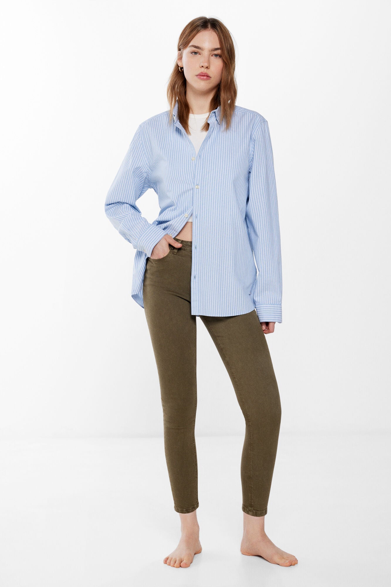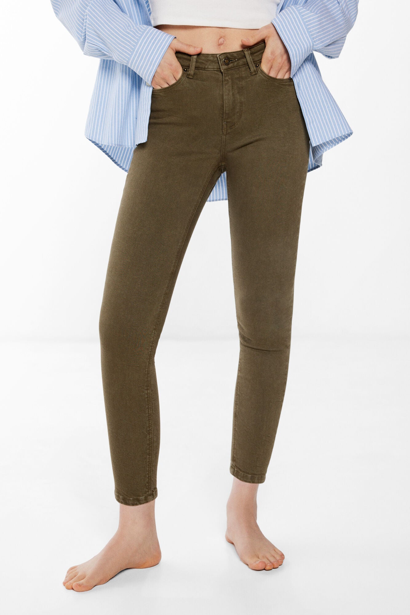 Slim fit mid-rise jeans, ankle length, with front and back pockets and button and zip fly. The wash of these jeans was carried out with new technologies, reducing the consumption of water, chemicals and energy.
